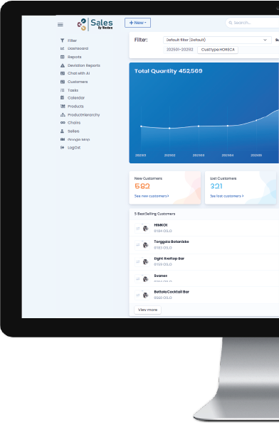 Sales by Vestex samler salgsdata fra alle grossister, Vinmonopolet og direkte salg - Uansett format – og gir deg full kontroll i ett system.